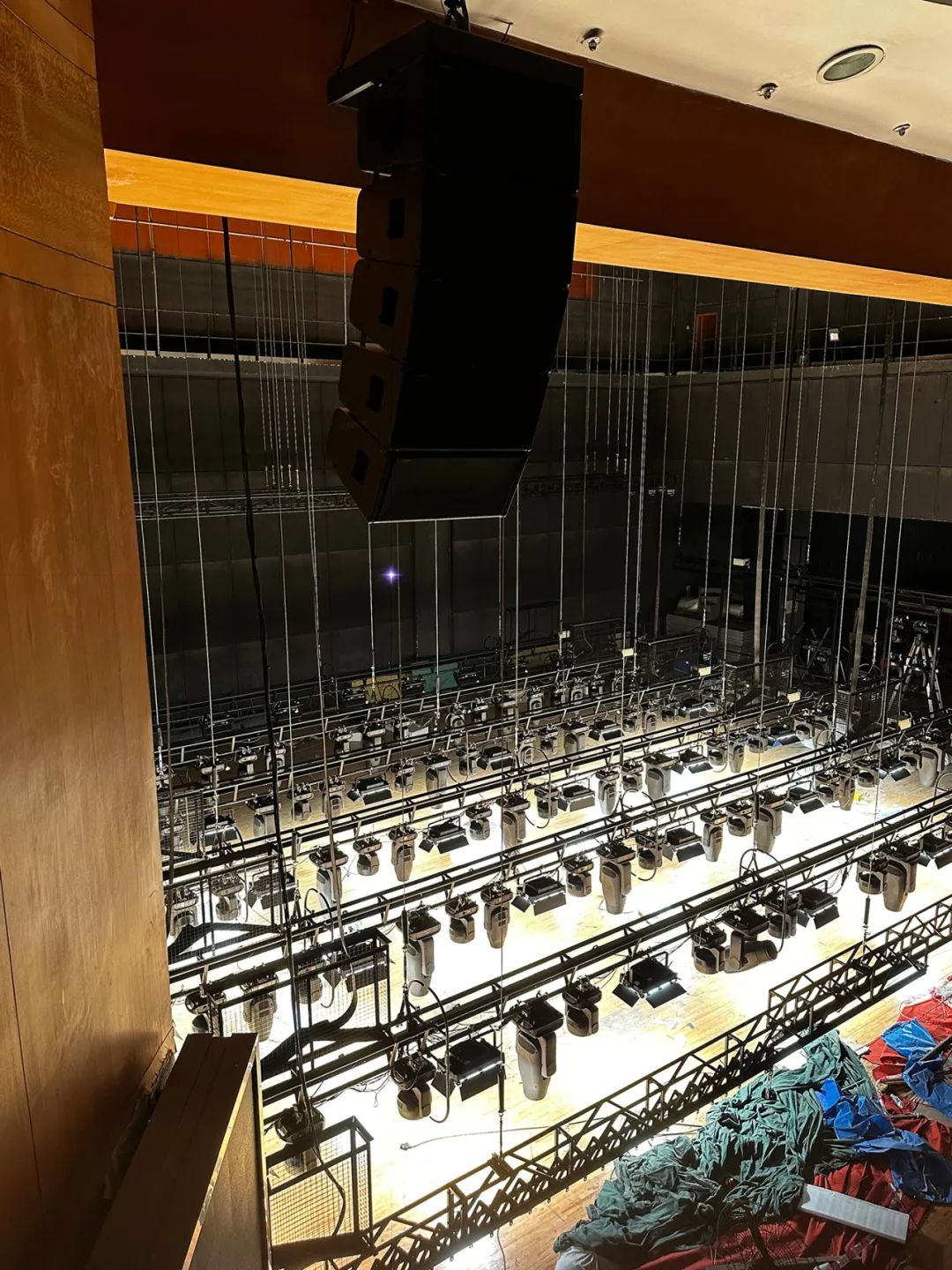 左右声道主扩扬声器使用了10只TWAUDiO VERA 20i吊挂安装在舞台两侧,为观众区提供主要的声音覆盖,中央声道扬声器的2只TWAUDiO T24N布置在舞台中央上方,增强舞台中央区域的声音定位感和清晰度,增强观众的沉浸感和参与感。为了进一步提高了低频质量,加入了TWAUDiO VERA S17i和TWAUDiO BSX超低扬声器,增强低频效果,提升现场震撼力。